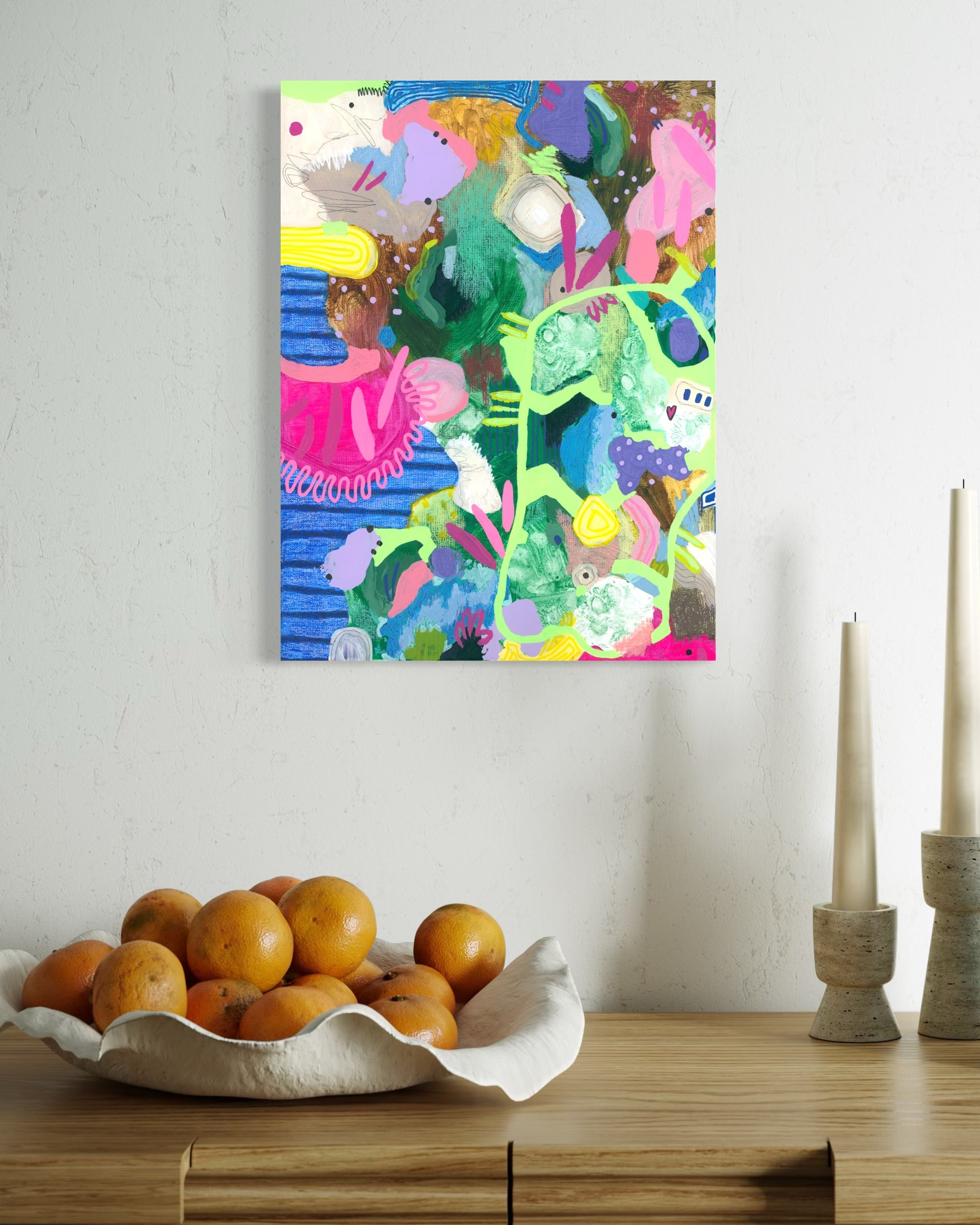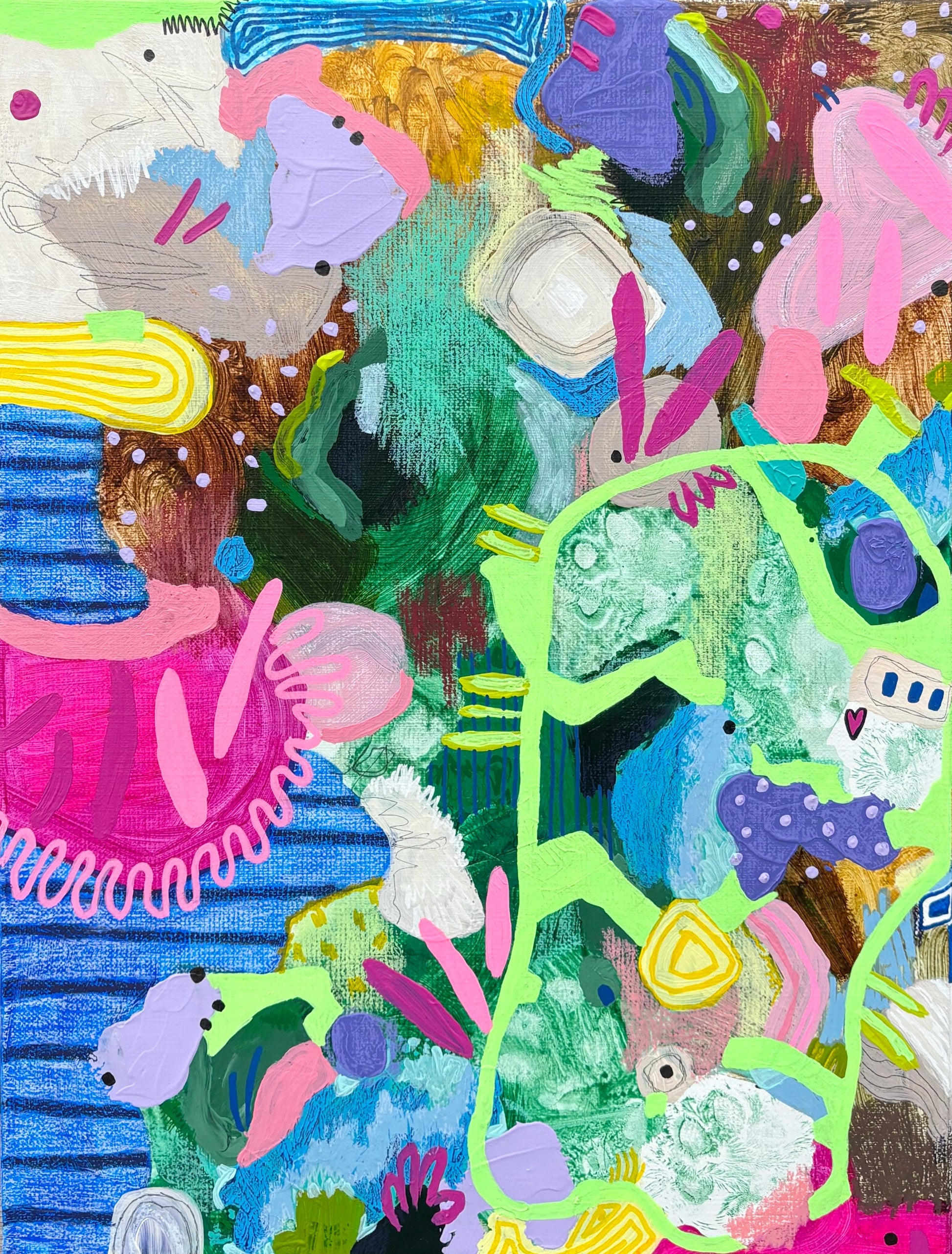 acrylic, wax pastel, linen canvas